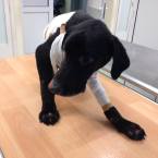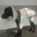 As you can see from the photo’s Phoenix’s injuries cover a large area of his body and will need a lot of care and treatment to put right, but this little dog is definitely a survivor and just won’t give up, which is pretty amazing considering what was done to him.